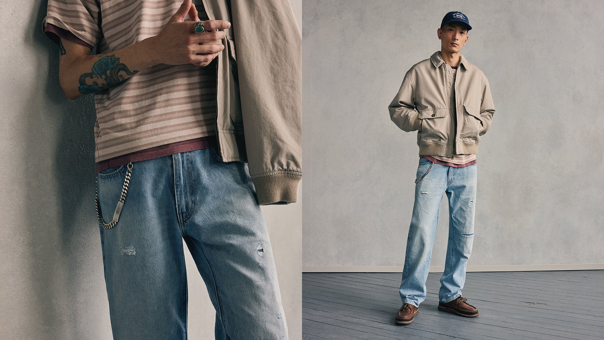If your look feels too tense, ground it with a blank canvas–like classic jeans, a western shirt or Trucker Jacket.