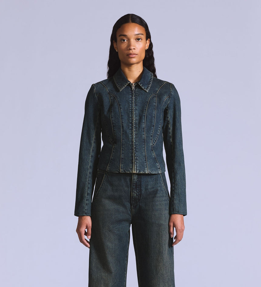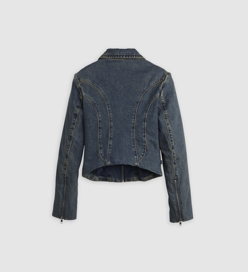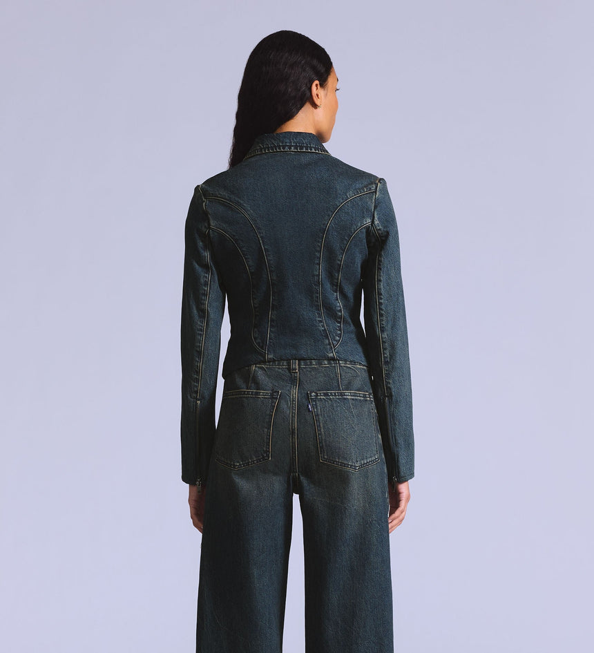 Levi's® Blue Tab™ is an elevated collection that infuses our iconic denim heritage with traditional craftsmanship. Expect thoughtful details, sharp tailoring and finishes that are rich with character.. With its ultra-flattering slim fit, our Moto Jacket is designed with seam detailing and a classic zip-up front.