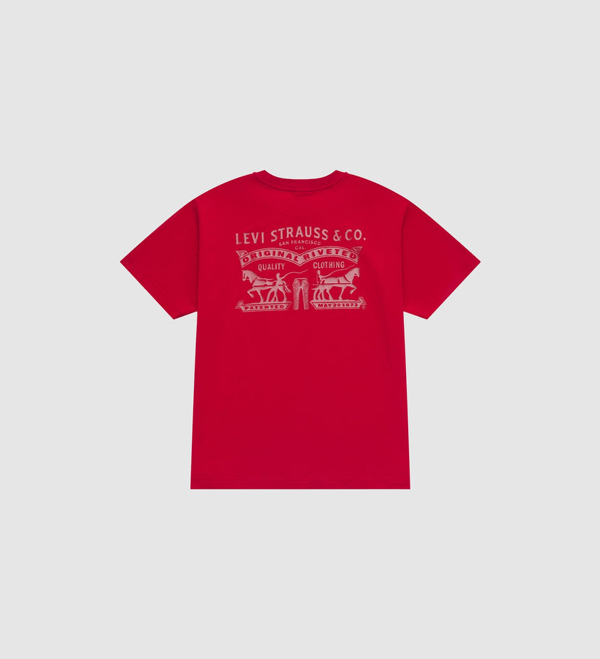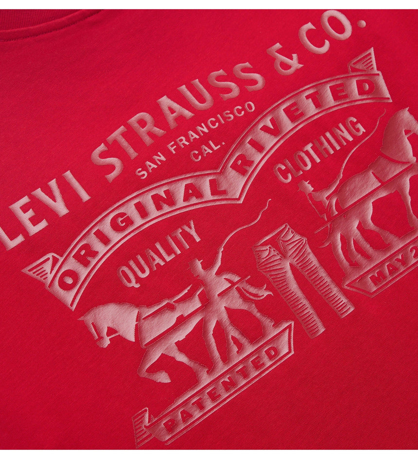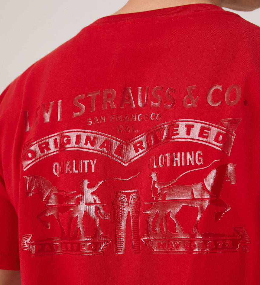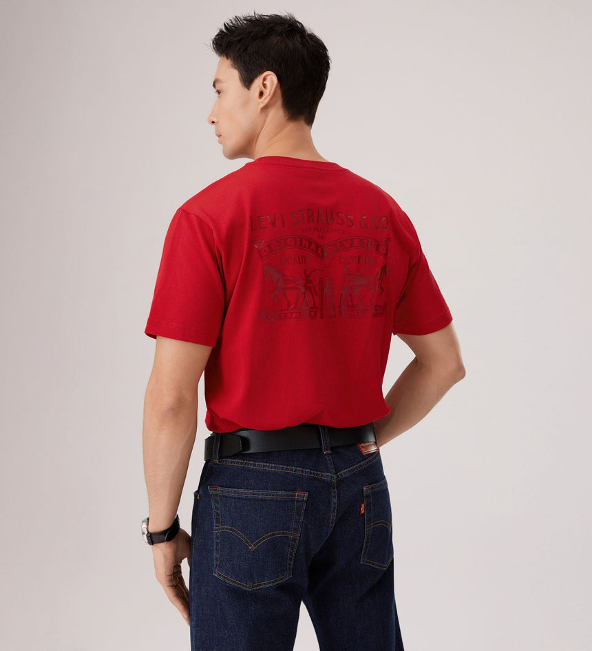 It’s the Year of the Horse and time to celebrate. Out with the old and into the new—fresh Levi’s® styles bring good luck.. This limited-edition Two Horse Regular Tee features a relaxed fit with a gold batwing logo on the front and a Levi's® graphic design at the back.