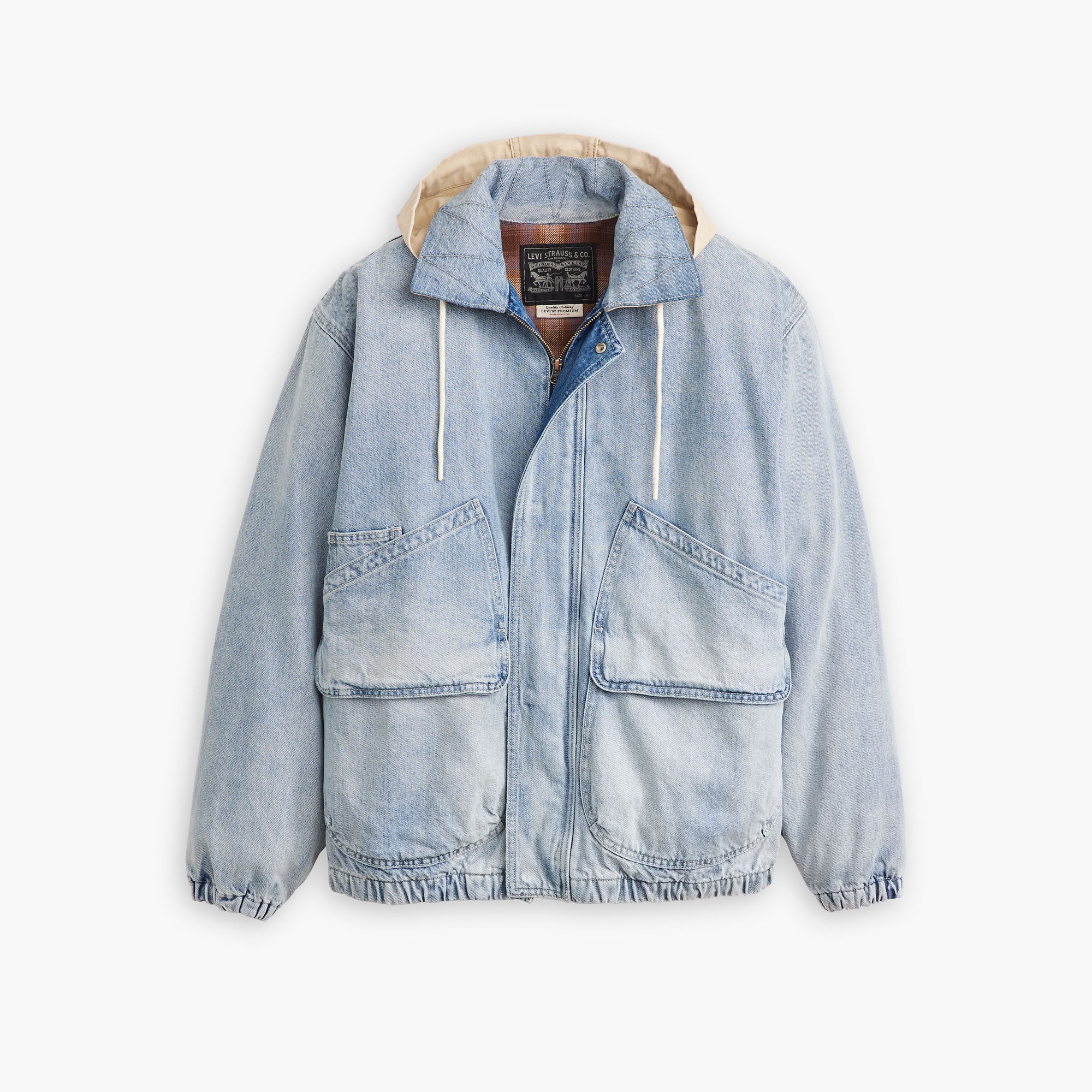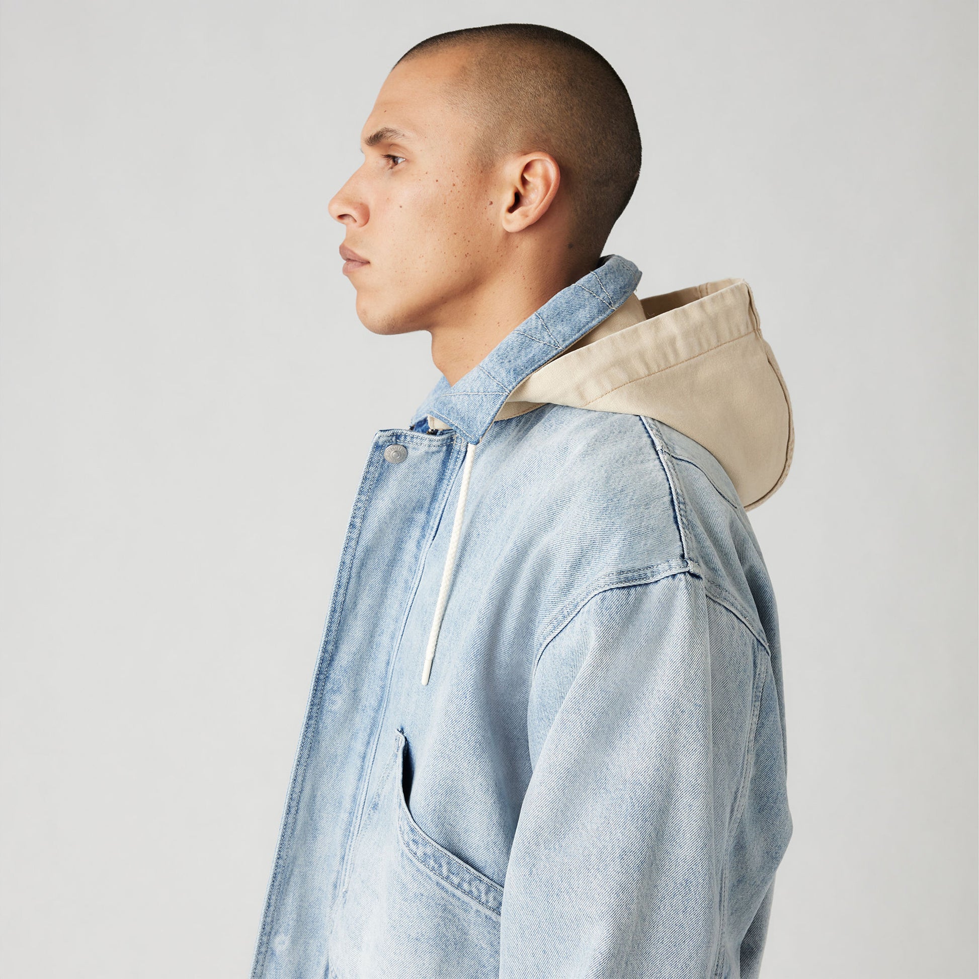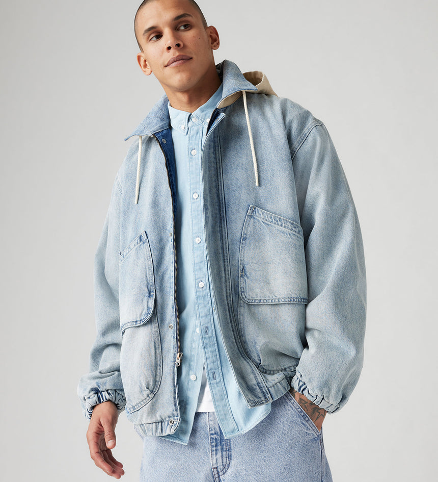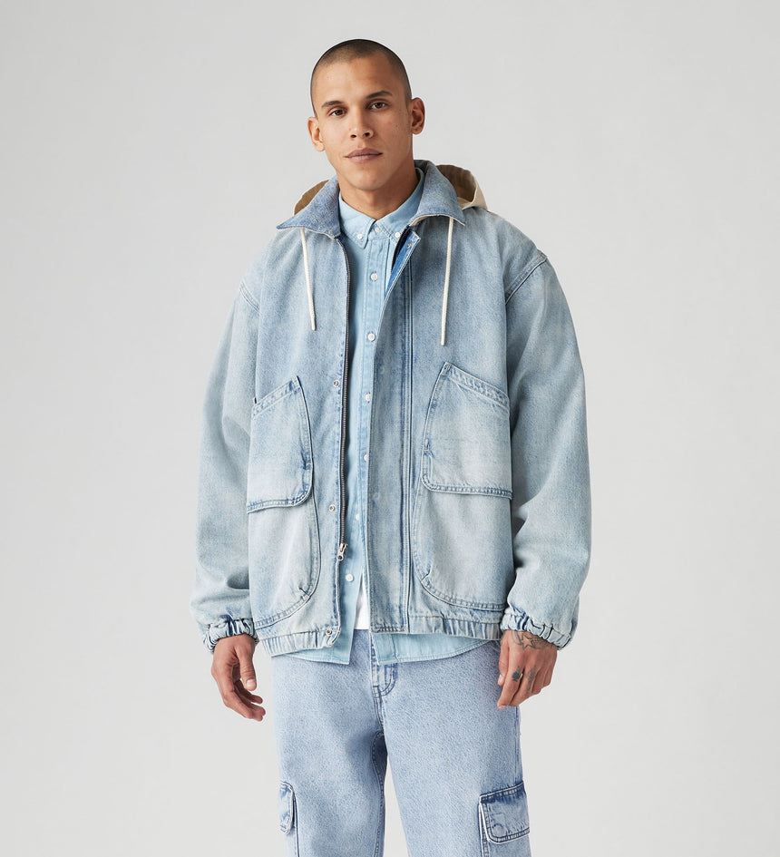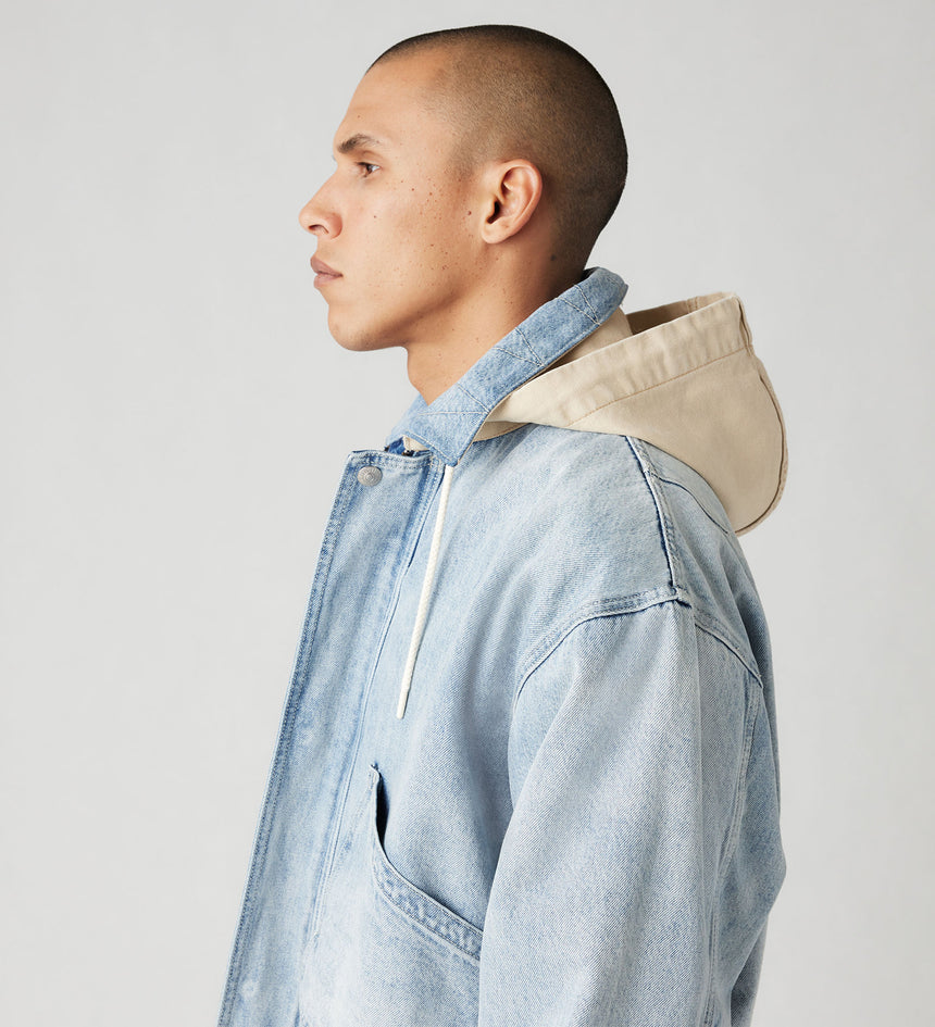 A streetwear-inspired jacket like no other. Our Duboce Hooded Work Jacket features a point collar, a slightly relaxed fit, two oversized pockets and an adjustable hood.