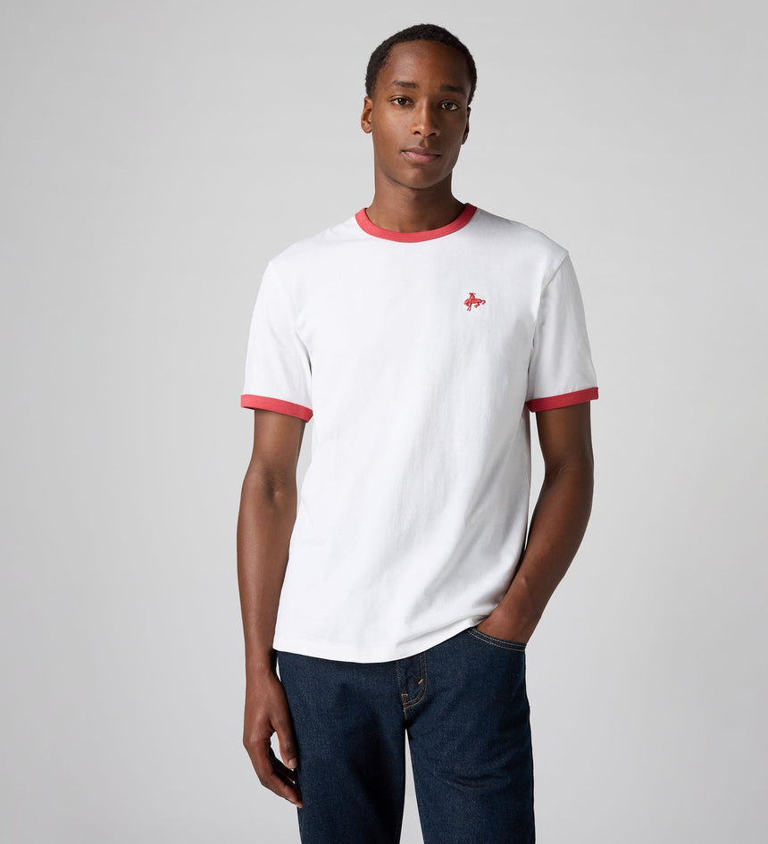 We're throwing it back with this Retro Embroidered Ringer Tee. Featuring a classic, standard fit, we designed this piece with a banded collar and sleeves and finished it with Levi's® embroidery.
