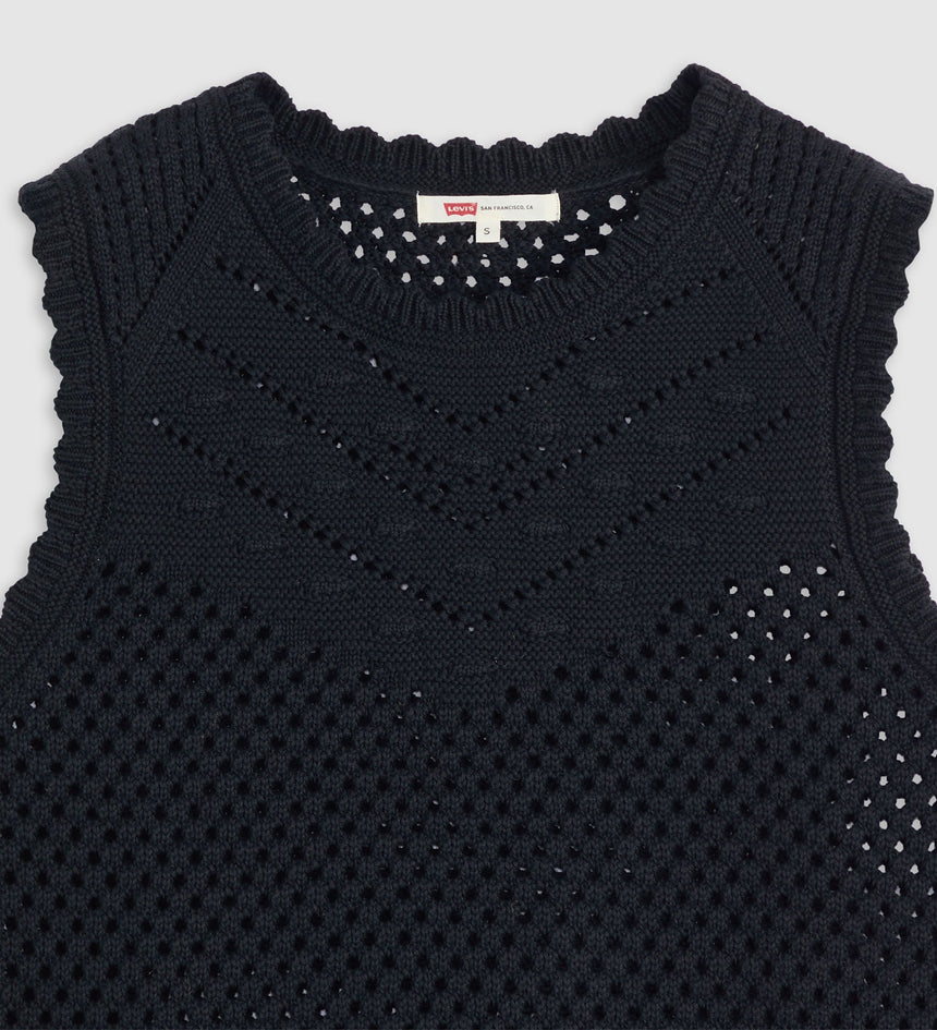 Our Adrienne Crochet Tank is both playful and easygoing thanks to its crochet-trimmed high neckline, knit design and sleeveless cut.