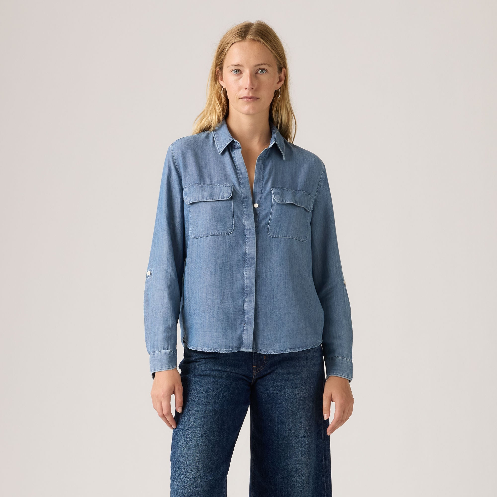 The timeless utility shirt gets a laidback upgrade. We designed our Elaine Utility Shirt with a classic button-up front, patch pockets and a relaxed fit for all-day ease.