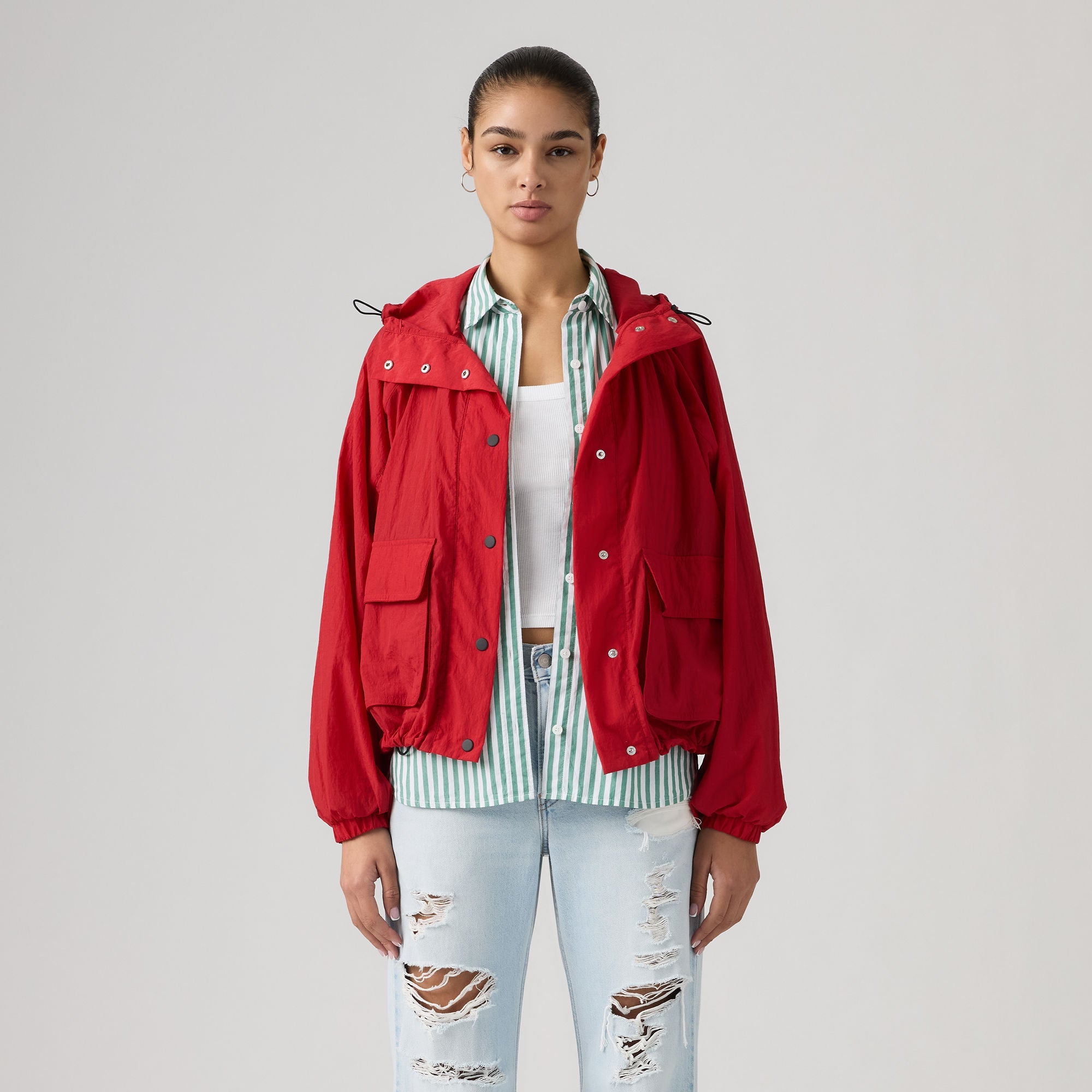 Our Simone Blouson Parka isn't your average jacket—it's a lighter, modern take on the classic parka to take on chilly days. We gave it a cinchable hood, a button-down front, a relaxed fit and two patch pockets for extra storage.
