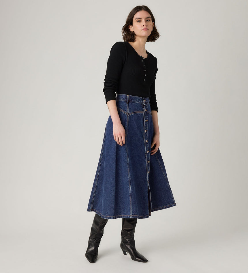 Your favorite midi skirt—with a touch of western. Cut with a flattering high rise, yoke detailing an ankle-skimming length, this Western Skirt makes an outfit.